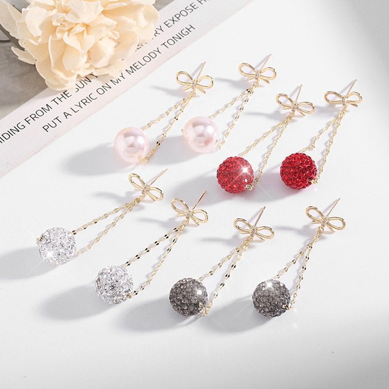 - 1Pair* Bow Diamond Ball Earrings