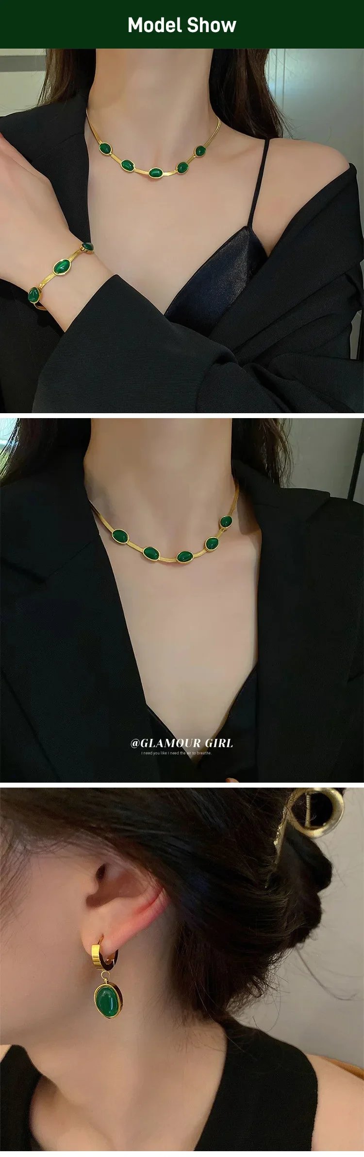 Emerald necklace earrings bracelet